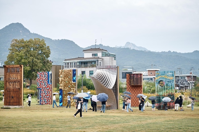 열린송현 녹지광장 '일상의 벽' 전시 공간을 거니는 시민들.(사진=서울도시건축비엔날레)