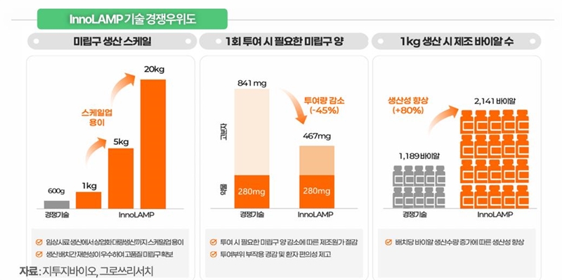 지투지바이오는 이미 오송 본사 내 공정 테스트 시설과 복지부 산하 K-바이오 GMP 설비에서 임상용 시료를 생산하고 있으며, 자체 스케일업 시스템을 통해 최대 20kg까지 생산이 가능하다. 경쟁사 대비 약 7~8배 수준의 생산 능력을 확보한 상태다.
