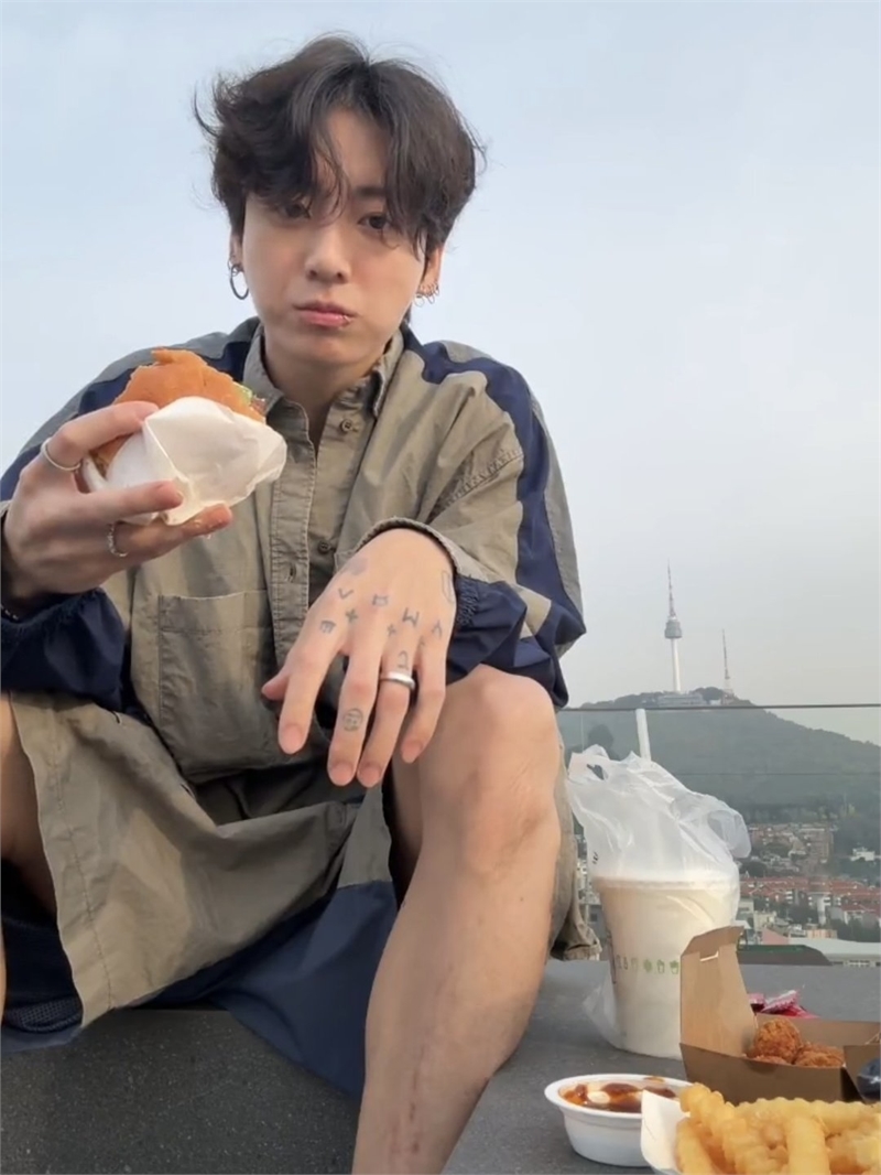 최근 정국은 팬 커뮤니티 위버스를 통해 남산 타워가 한 눈에 보이는 자신의 집 옥상에서 햄버거 먹방을 펼쳤다. 정국은 "제가 햇빛을 많이 못 봐서 이렇게라도 햇빛을 본다"며 햄버거를 비롯해 감자튀김 등을 맛깔스럽게 먹어 보는 이들의 입맛을 한껏 자극했다.