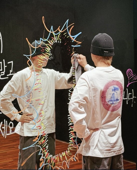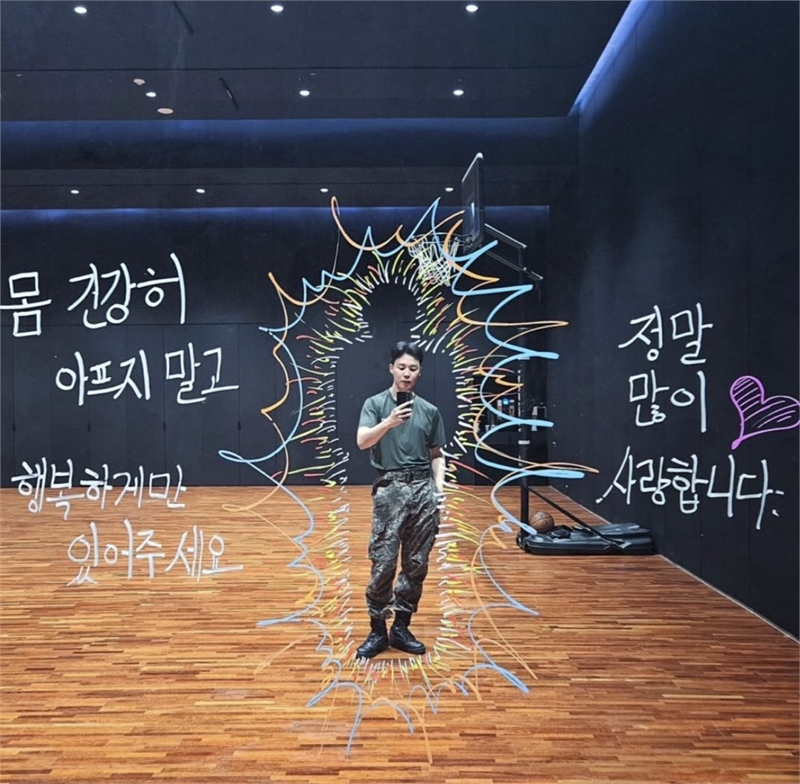 최근 지민은 자신의 인스타그램에 연습실 거울을 닦는 영상을 올리며 “자, 이제 활동 열심히 하겠습니다. 감사합니다”라고 다짐을 전했다. 이 거울에는 지민이 2023년 12월 입대 전 직접 남긴 그림과 메시지가 담겨 있다.