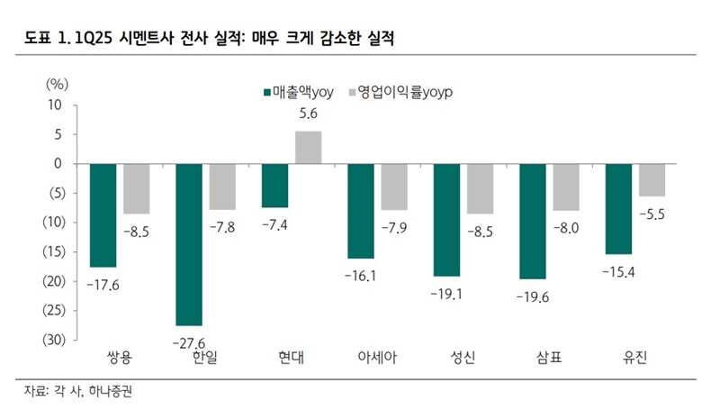 2025년 1분기 시멘트사 전사 실적 비교표. (자료=하나증권)