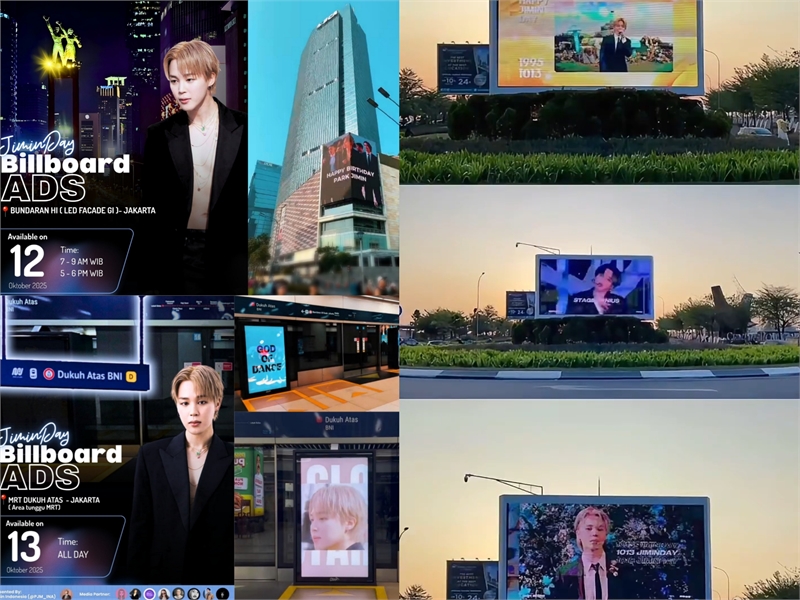 인도네시아 팬베이스(PJM_INA)는 자카르타 중심부인 분다란 하이의 Kempinski 빌딩 미디어 파사드에서 10월 12일에 지민의 생일을 축하하는 광고를 송출, 13일에는 MRT 지하철의 Dukuh Atas역에 10개 화면에 LED 광고를 진행했다. 인도네시아 팬들은 마음을 모아 Makassar City 대형 LED 전광판에 생일 축하 광고를 진행하며 멀리서 생일을 축하하기도 했다.