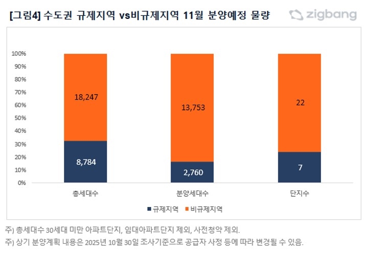 수도권 규제지역과 비규제지역 11월 분양예정 물량 비교 (자료=직방)