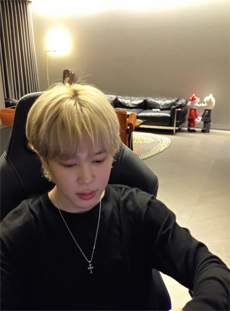 최근 지민은 금발에 투명한 피부, 사랑스러운 미소로 위버스 라이브에 등장했다. 라이브 내내 유쾌한 에너지를 보인 지민은 뷔와 함께한 게임 합방 이야기를 시작으로, 사소한 TMI 채팅까지 하나하나 읽으며 팬들과 소통했다.