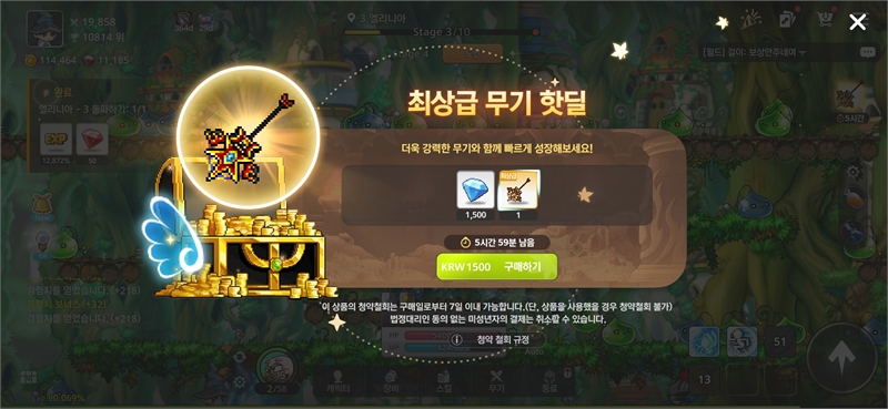 또 일정 시간마다 '핫세일'이라는 팝업 상품이 등장한다. 스테이지 클리어에 실패하면 고등급 무기·장비를 비교적 저렴한 가격에 구매할 수 있다. 무과금으로도 시간을 들이면 충분히 돌파 가능하지만, 플레이어에게 보다 많은 선택지를 주기 위한 설계로 보인다.