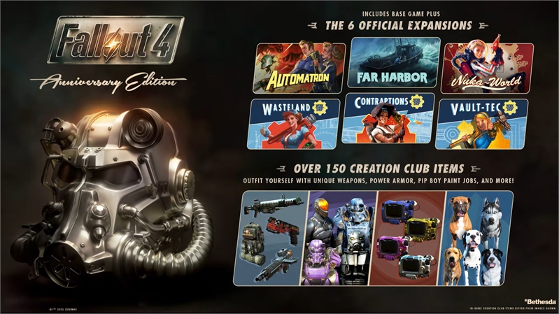 이번 완전판에는 본편과 6가지 공식 DLC 애드온, 150개 이상의 크리에이션 클럽 콘텐츠 등 100시간 이상의 콘텐츠가 담겼다. 해당 에디션은 엑스박스 X·S 시리즈, PS5·4, 스팀 PC 버전으로 출시되며, 향후 '스위치2' 버전 확장도 예고됐다. 이용자는 핵전쟁 이후의 보스턴에서 보낸 10년의 추억과 모험을 경험할 수 있다.