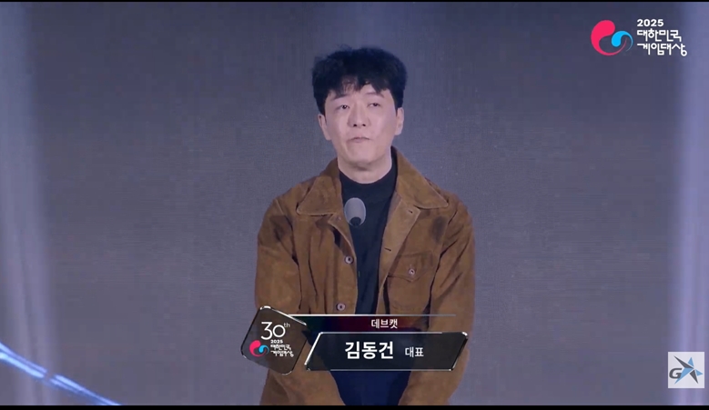 김동건 데브캣 대표. (사진='2025 대한민국 게임대상' 라이브 갈무리)