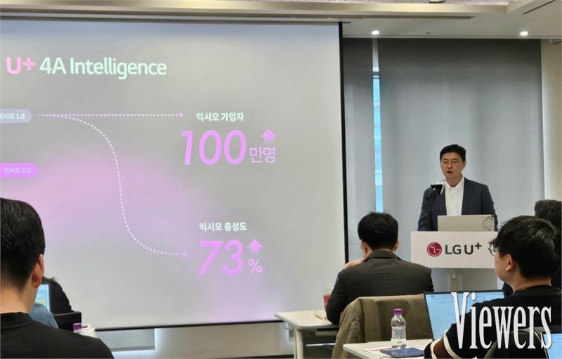LG유플러스의 이재원 컨슈머부문장(부사장)과 최현호 상무 등은 13일 서울 종로구 센터폴리스 컨퍼런스룸에서 열린 기자간담회에서 '익시오(ixi-O) AI 비서'를 소개하며 이렇게 말했다. 경쟁사인 SK텔레콤의 음성 AI비서 '에이닷'보다 진화한 방식으로 도전장을 내밀었다.