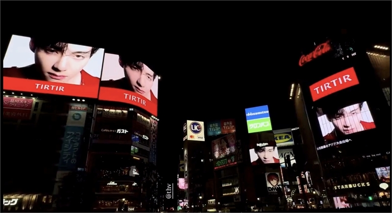 일본 도쿄의 MEDIA DEPARTMENT TOKYO에서는 11월 15일부터 22일까지 일주일간 팝업 스토어가 열린다. 도쿄의 상징적인 랜드마크인 시부야 스크램블 교차로를 둘러싼 대형 빌딩의 광고판에는 뷔의 광고 영상이 송출돼 도쿄의 밤을 화려하게 장식하고 있다.