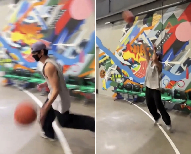 농구선수를 연상시키는 큰 키와 긴 다리, 탄탄한 팔 근육이 시선을 사로잡았다. 탈의를 하고 바로 뛰어나가면서 손목을 이용해 가볍게 던진 레이업 슛을 깔끔하게 성공시켜 만능 스포츠맨의 면모를 뽐냈다. 드리블을 하는 모습은 마치 안무 연습하는 듯 부드럽고 아름답게 움직였다.