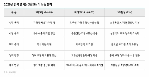 그는 "경험적으로 이는 한국증시에 우호적인 환경이었다"며 "강세장 속에서도 요철구간은 늘 존재하지만 과거 학습효과를 감안하면, 지금은 의심할 때가 아닌 레벨업하는 코스피에 올라탈 시기에 가깝다. 한단계 위로 올라서는 시장에서, 망설임은 곧 기회비용"이라고 강조했다.