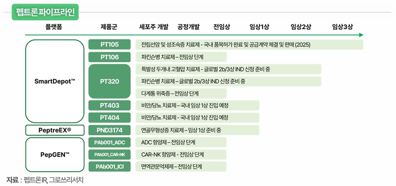 펩트론은 현재 SmartDepot 외에도 PeptreEX®와 PepGEN 등 펩타이드·항체 기반 신규 플랫폼을 통해 파이프라인을 확장 중이며, 장기적으로 희귀질환 및 항암 영역까지 진출을 예고하고 있다. 기술력과 상업화 경험을 모두 갖춘 펩트론은 ‘장기지속형’이라는 차세대 치료제 핵심 키워드 속에서 글로벌 파트너들의 전략적 선택지로 부상하고 있다.