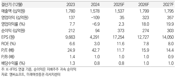 엔씨소프트에 대해 그는 "11월부터 리니지M과 2M, 아이온2 등 모바일 게임에 자체 결제 시스템을 전격 도입한 가운데 내년말 자체 결제 비중이 50%에 도달할 전망"이라며 "자체 결제 도입에 따른 지급 수수료 절감 효과는 2026년 1000억원 이상을 예상한다"고 말했다.