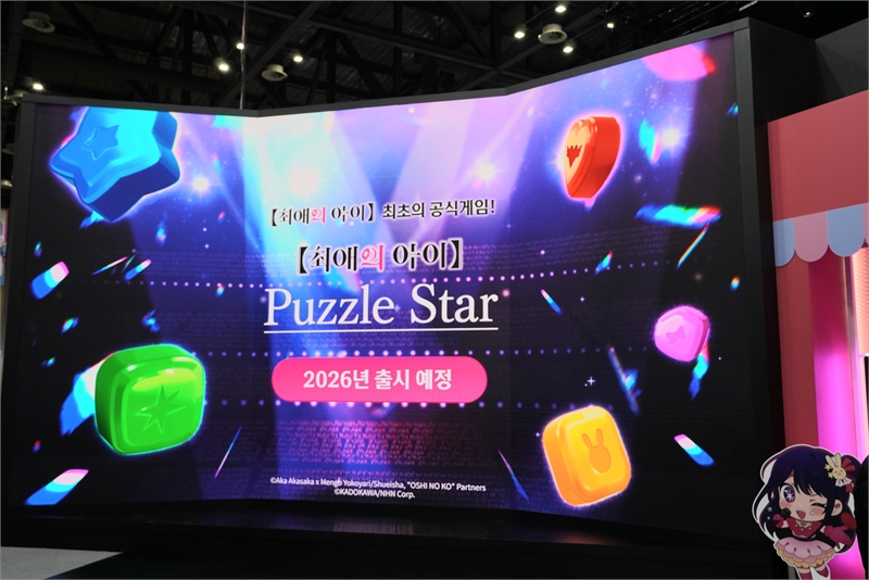 NHN은 수집형 RPG '어비스디아', 퍼즐 모바일 매치3 '최애의 아이 Puzzle Star' 2종을 출품했다. '어비스디아'는 지난 8월 일본에서 서비스를 시작한 뒤 오는 2026년 상반기 국내 출시를 계획 중이며, 마찬가지로 내년 상반기 출시 예정인 '최애의 아이 Puzzle Star'는 '최애의 아이' IP를 활용한 첫 공식 게임이다.