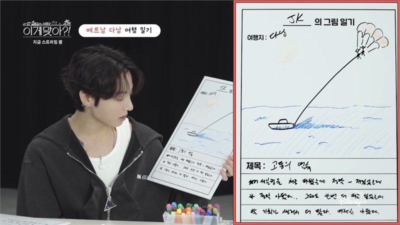 두 번째 그림일기에서는 베트남 다낭 여행의 하이라이트로 두 사람 모두 ‘패러세일링’을 꼽아 앞으로 공개될 에피소드에 대한 기대를 높였다. 지민은 “다낭을 한눈에 담았던 추억은 앞으로도 잊을 수 없는 기억으로 남을 것 같다”고 전하며, 하늘에서 내려다본 이국적이고 생동감 넘치는 풍경의 감동을 생생하게 전했다.