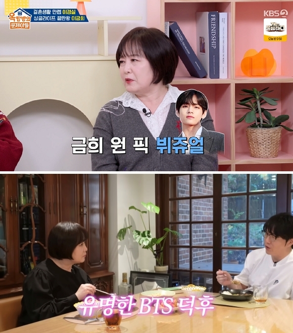 최근 이금희는 KBS 2TV ‘옥탑방의 문제아들’ 방송에서 “지금도 이상형이 뷔예요?” 질문에 대해 “늘 물어보셔도 뷔님이예요”라고 답하며 변함없는 팬심을 밝혔다.