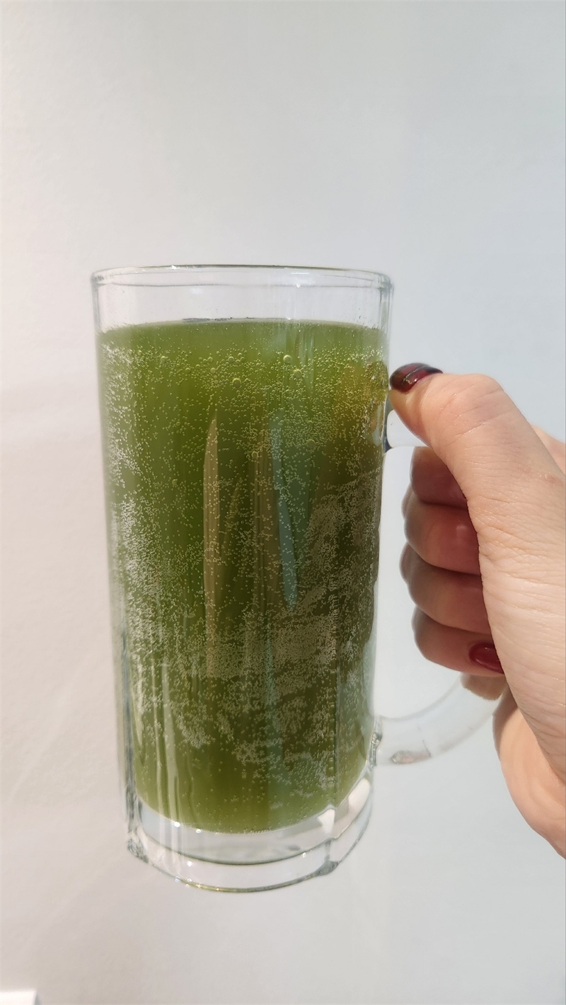 마셔보니 단맛과 산뜻함이 먼저 나오는 쪽에 가까웠습니다. 말차의 쌉쌀함이 위스키의 알코올감을 먼저 눌러주는 구조였죠. 말차 가루가 혀에 직접 닿으면서 입안을 한번 정리하고 그 다음에 하이볼 특유의 청량함이 이어집니다. 탄산은 과하지 않아 목을 자극하지 않고 전체적으로 가볍게 정돈된 느낌을 줍니다. “알코올이 높은 술이 부담스럽다”는 사람도 쉽게 접할 수 있을 맛입니다.