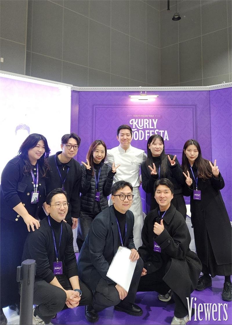 김호윤 셰프가 지난 18일 서울 강서구 코엑스 마곡 르웨스트에서 열린 ‘컬리푸드페스타 2025’ 셰프 테이블에서 조리 시연을 한 뒤 컬리관계자들과 기념촬영을 하고있다. (사진=내미림 기자)