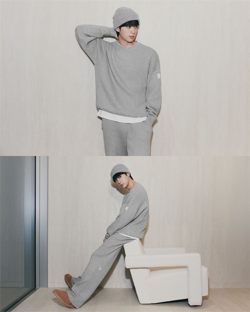 최근 진은 글로벌 팬 커뮤니티 위버스(weverse)를 통해 근황을 공유했다. 미국 인기 브랜드 알로(ALO)의 글로벌 앰버서더답게 해당 옷을 입고 세계 최고 미남의 비현실적인 미모를 뽐냈다.