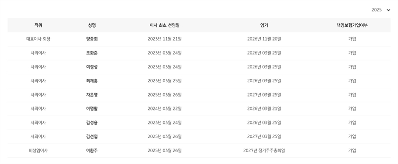 이제 내년 2월 사외이사후보추천위원회에서 신임 이사, 중임 이사 퍼즐만 잘 맞추면 비가 오고 바람이 불어도 큰 피해는 입지 않을 수도 있습니다.