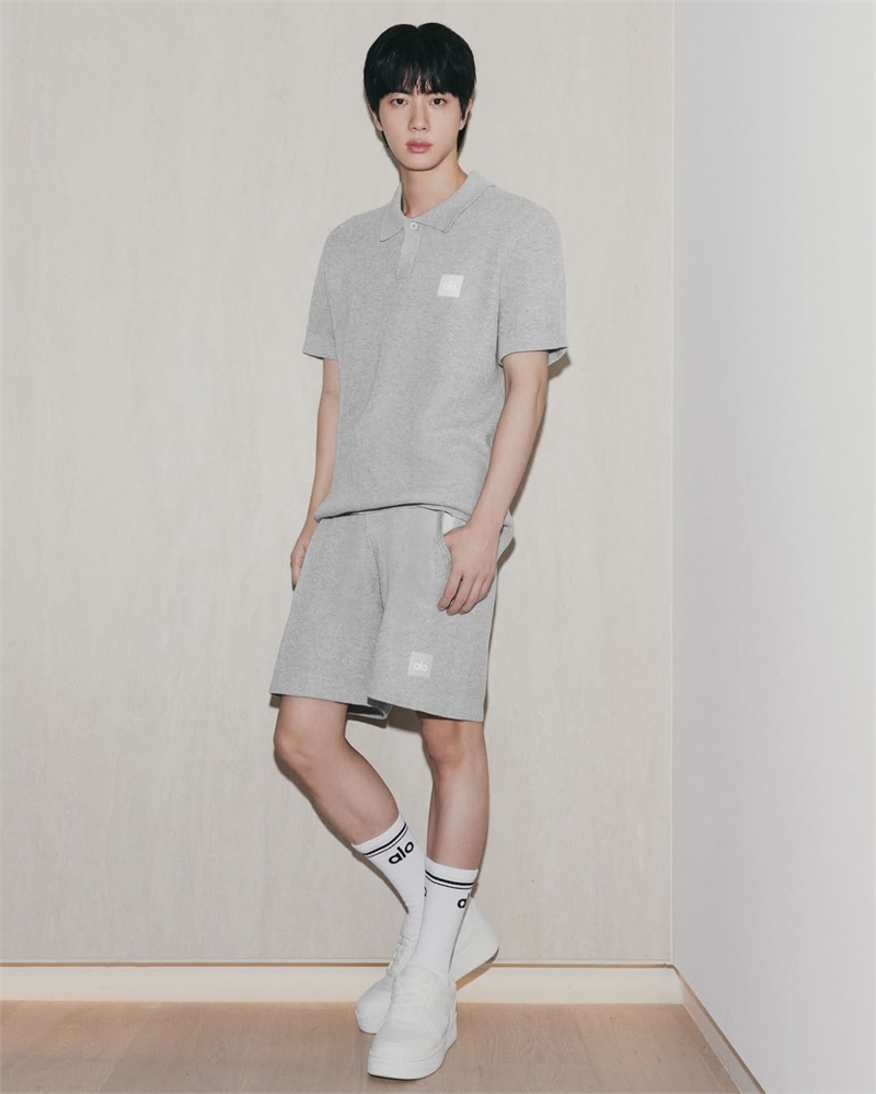 최근 진은 글로벌 팬 커뮤니티 위버스를 통해 사진을 공개했다. 미국 인기 브랜드 알로(ALO)의 글로벌 앰버서더인 진은 녹음실에서 헤드폰을 쓴 채 알로의 그레이 후드 집업 재킷을 입었다. 또렷하고 맑은 눈동자와 이상적인 코, 아름다운 입술, 매끄러운 피부 등 비현실적인 이목구비로 감탄을 자아냈다.