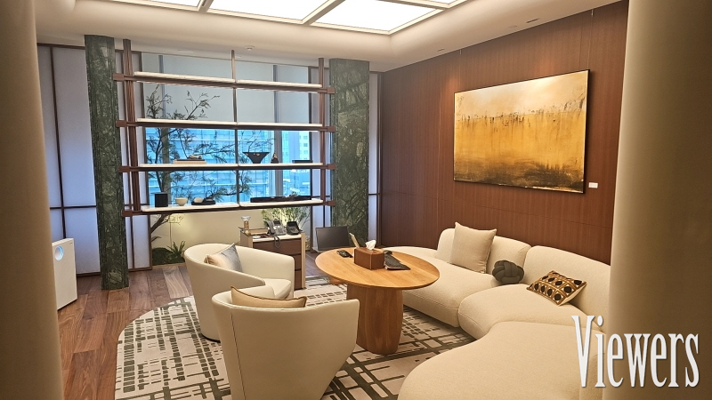 (호텔 로비 분위기의 하나증권 '더 센터필드 W' 라운지, 사진=문재혁 기자)