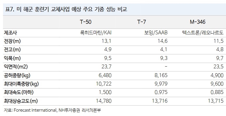 특히 지난해 11월 이재명 대통령 순방으로 UAE의 KF-21 도입 가능성도 높아졌다고 봤다. 이 애널리스트는 "UAE는 노후 F-16 및 미라주 2000 교체를 위해 KF-21에 관심을 보여 왔으며, 작년 8월 UAE 국방차관이 한국에 방문해 KF-21 시제기 탑승 비행을 했다"며 "이외에 이집트 FA-50 및 미 해군 훈련기 교체 사업도 가능성이 높다고 판단한다"고 강조했다.