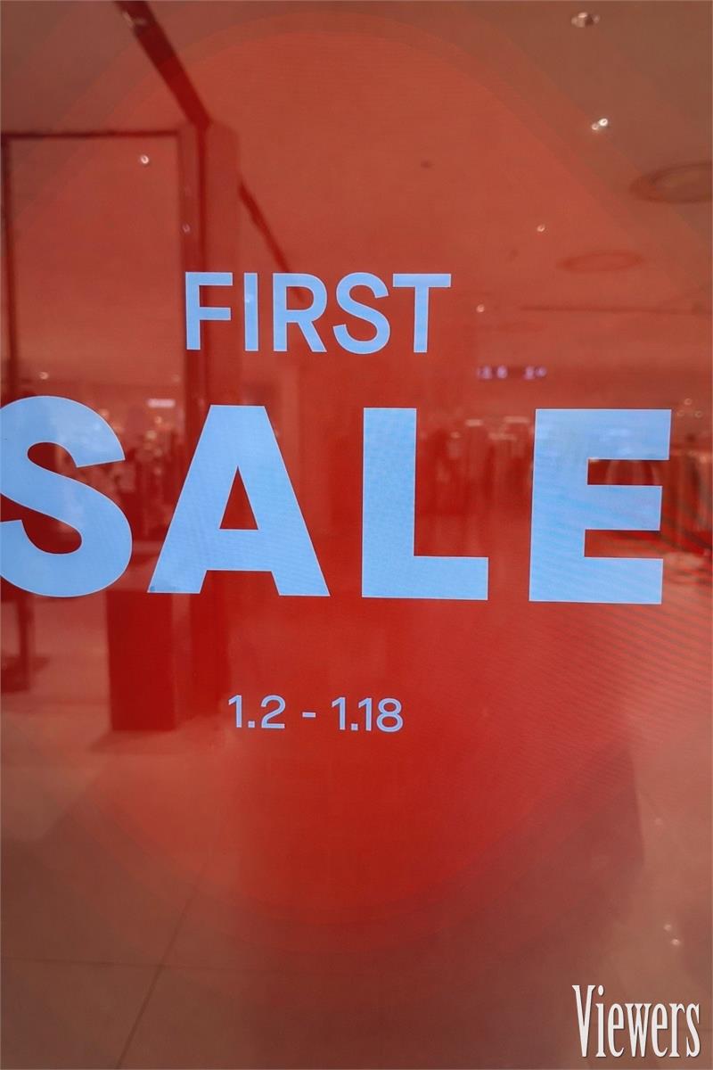 겨울 정기세일이 진행 중인 백화점 매장 입구에 ‘퍼스트 세일(FIRST SALE)’ 안내물이 부착돼 있다. (사진=내미림 기자)