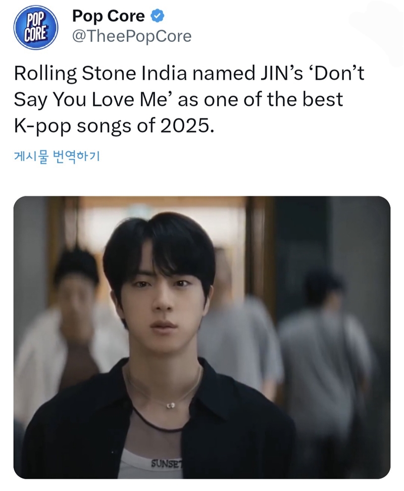 방탄소년단(BTS) 진의 솔로곡 'Don't Say You Love Me'가 글로벌 인기와 영향력을 다시 한번 입증했다.