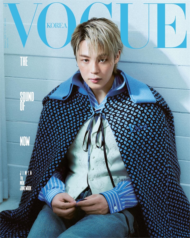 지민은 이번 보그 코리아 2월호 화보에서 금발에 무쌍의 큰 눈에서 뿜어져 나오는 몽환적인 분위기로 보는 이들을 매료시켰다. 또 춤과 다년간의 다양한 운동으로 다져진 완벽한 신체비율을 자랑하며 디올 꽃무늬 재킷을 비롯해 블랙 베스트와 재킷, 짙은 청록색 슈트 등을 완벽하게 소화했다.