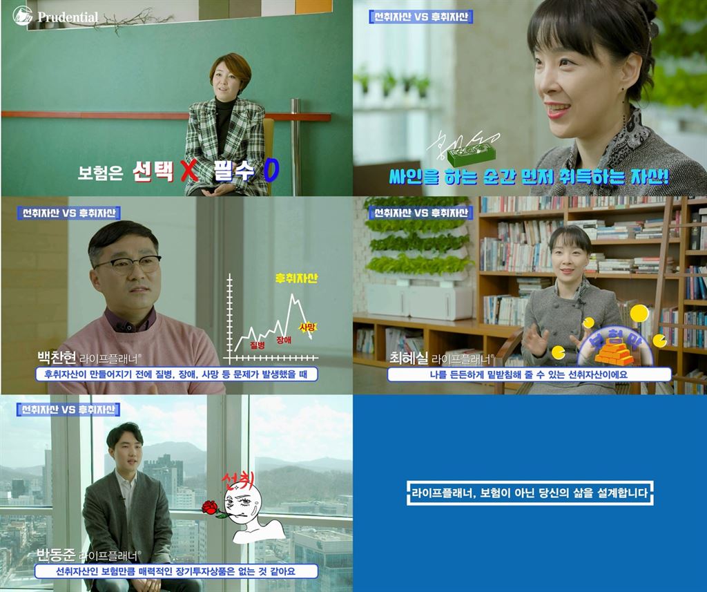 4일 공개된 ‘당신이 보험에 관해 모르고 있던 것들’의 첫번째 영상은 ‘보험이 돈이 된다고?’ 편으로, 푸르덴셜생명의 우수 라이프플래너들이 출연해 금융상품 중 하나로써 보험의 필요성에 대해 이야기한다.