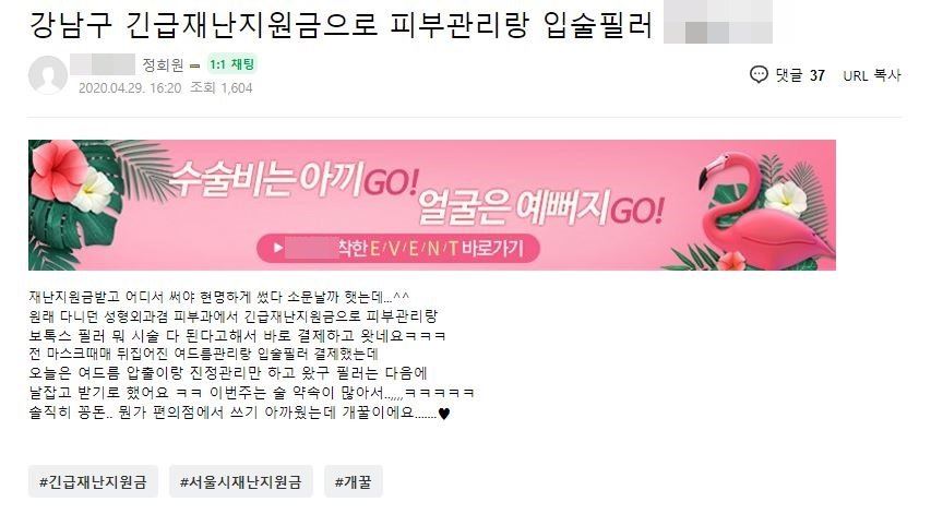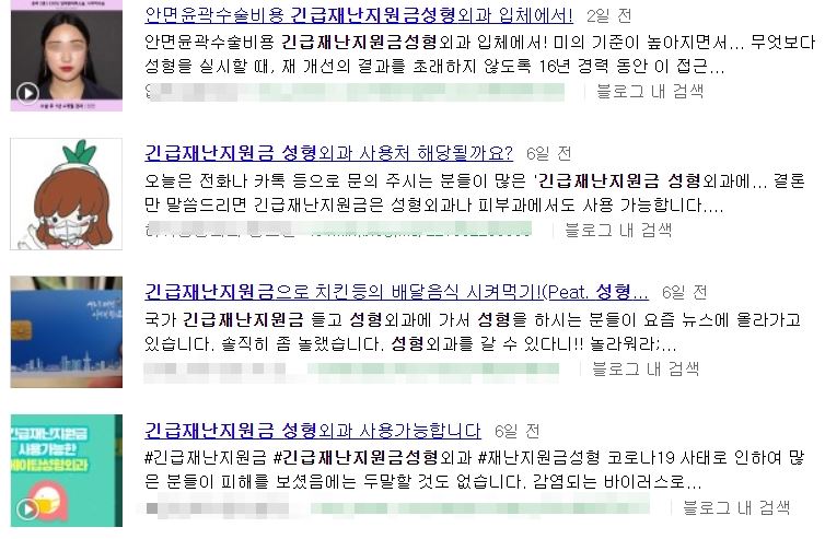 뷰티 관련 커뮤니티에는 긴급재난지원금으로 피부 미용 및 눈이나 가슴 등 성형외과 수술을 했다는 후기글이 곳곳에서 발견되기도 했습니다.