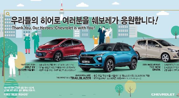 쉐보레가 5월에 이어 6월에도 코로나19로 인한 어려움 속에서 수고하고 있는 이들을 격려하기 위해 ‘우리들의 히어로 여러분을 쉐보레가 응원합니다!’ 캠페인을 연장 시행한다고 1일 밝혔다. (사진=한국지엠)