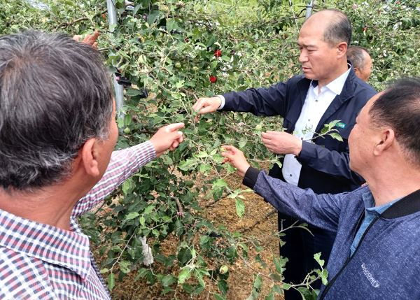 NH농협손해보험 최창수 대표이사가 지난 10일, 갑작스러운 우박으로 농작물 피해를 입은 전라북도 무주군 소재 과수 농가 두 곳을 방문해 피해현황을 직접 점검하고 농가를 위로했다고 11일 밝혔다.