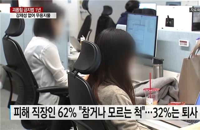 15일 '직장갑질119'가 최근 전국 직장인 1000명을 대상으로 한 설문조사 결과에 따르면 직장 내 괴롭힘을 당했다는 응답자가 45.4%에 달했다. (자료=YTN캡처)