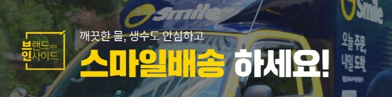 지난 해 8월부터 운영 중인 스마일배송의 ‘생수전문배송’은 오늘 저녁 6시까지 생수를 주문하면 1-2일 내에 무료배송 받을 수 있는 서비스다. 일반 택배배송 중 발생하는 생수파손 및 외부 오염을 방지할 수 있도록, 전국 생수전문센터의 생수배달 전문기사가 안전하게 배달하고 있다.