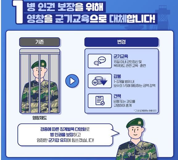 다음달 5일부터 국방부가 영창을 군기교육으로 대체하는 개정 군인사법을 시행한다. (자료=국방부)