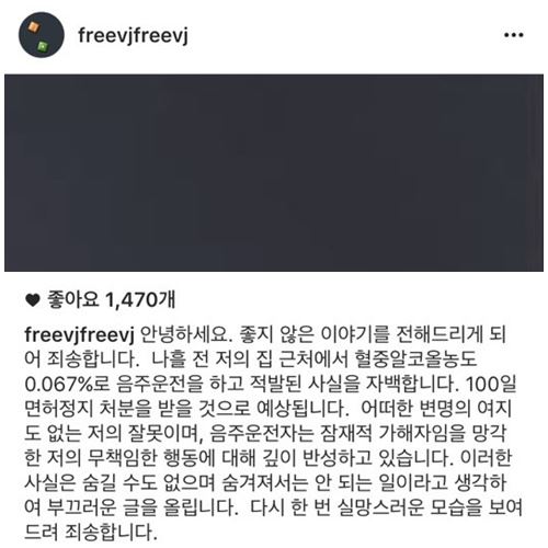 버벌진트는 “어떠한 변명의 여지도 없는 저의 잘못이며, 음주운전자는 잠재적 가해자임을 망각한 저의 무책임한 행동에 대해 깊이 반성하고 있습니다. 이러한 사실은 숨길 수도 없으며 숨겨져서는 안 되는 일이라고 생각하여 부끄러운 글을 올립니다. 다시 한 번 실망스러운 모습을 보여드려 죄송합니다”라고 적었다.